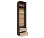 Пенал витрина с прозрачным стеклом и выдвижными ящиками для гостиной Плейона. Скошенные фасады дают возможность открывать ящики без лицевой фурнитуры, роль ручек выполняют торцы фасадов. Шкаф-пенал выпускается в двух цветах: полностью белый и венге/дуб делано. В комплекте роликовые направляющие ящиков 350 мм.