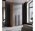 Недорогой 3-створчатый шкаф для одежды со штангой, полками и с двумя ящиками внутри. Современный шкаф серого цвета без зеркал с черной ручкой. Шкаф можно укомплектовать антресолью высотой 40 см.