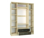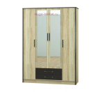 Шкаф в спальню Лирика со штангой и полками, зеркалом и выдвижными ящиками. Недорогой 4-х створчатый шкаф в цвете дуб сонома.
