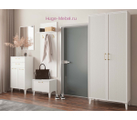 Двухстворчатый шкаф для одежды с выдвижной вешалкой и полками. Белый шкаф шириной 90 см и глубиной всего 40 см отлично подходит для небольших помещений, где важно сэкономить пространство. Шкаф входит в серию мебели для прихожей Толедо и выпускается в двух цветах: белом и сером графите. Петли с доводчиками обеспечивают бесшумное закрывание, качественные фасады из МДФ дополнены элегантными ручками золотистого цвета. Внутри шкафы евро штанга для одежды на плечиках, полки для хранения сложенной одежды и аксессуаров и две вместительные полки внизу и наверху для размещения обувных коробок.