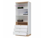 Недорогой шкаф для одежды с выдвижными ящиками и открытой полкой. 2-створчатый шкаф комплектуется штангой и полками. Шкаф с фасадами белого цвета подходит для спальни, детской и прихожей.
