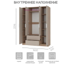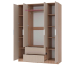 Вместительный четырехстворчатый шкаф для одежды подходит для гостиной и спальни. Шкаф шириной 160 см представляет собой готовую систему хранения: за центральными сворками штанга для одежды на плечиках, два вместительных выдвижных ящика, по бокам шкафа два отсека с пятью полками. Шкаф с надежными МДФ фасадами со стильной фрезеровкой.