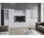 Шкаф витрина для гостиной Апполия белого цвета с фасадами МДФ. Шкаф со стеклом, выдвижным ящиком и полками внутри. Шкаф подходит для хранения посуды и книг и хорошо сочетается с другими предметами из серии модульной мебели для гостиной: шкафами для одежды, пеналами, комодами и ТВ тумбой Апполия. Шкаф можно дополнить декоративным карнизом.