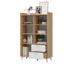 Удобный небольшой шкаф с выдвижными ящиками, открытыми и закрытыми полками подходит для хранения книг, документов, предметов декора. Шкаф входит в серию мебели Ирис и сочетается с другими шкафами и предметами из этой серии.