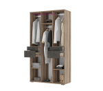 Распашной 3-х створчатый шкаф для одежды с полками, штангами и 4 выдвижными ящиками на шариковых направляющих. Высокий и вместительный шкаф Нельсон выпускается в двух цветовых решениях: дуб каньон/железный камень и дуб крафт белый.