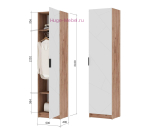 Одностворчатый распашной шкаф Орегон с выдвижной штангой и двумя полками внутри. Шкаф шириной 50 см и глубиной 40 см подходит для узких коридоров и небольших помещений. Шкаф пенал можно комбинировать с прихожей Орегон в том же цвете. Фасад шкафа белого цвета из качественного МДФ с фрезеровкой в виде пересекающихся линий.