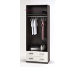 Недорогой шкаф с выдвижными ящиками светлого цвета. Внутри шкафа штанга для одежды на плечиках и полка. Благодаря компактным размерам и вместимости, шкаф подойдет как для небольшой прихожей, так и для комнаты.
